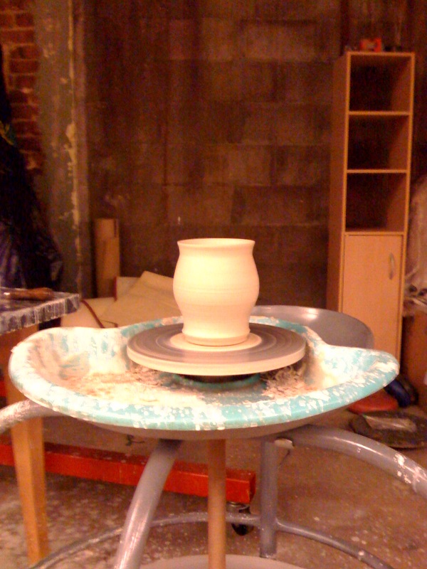 Today's work. This stoneware is easy to throw but dries coarse as hell...