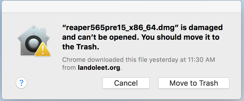 "(disk image name)" is damaged and can't be opened. You should move it to the Trash.